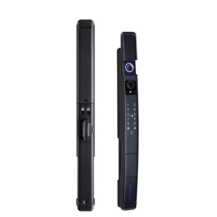 T1 Smart Lock brings security and style to aluminum doors in villas and apartments. Fully automatic with no handle, it locks as soon as the door closes. Built with an IP65-rated aluminum alloy body, it is waterproof, dustproof, and sun-resistant for reliable outdoor performance. The advanced fingerprint sensor provides fast, accurate access with multiple unlock options including password, card, app, and backup key.